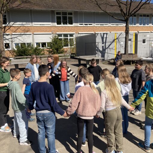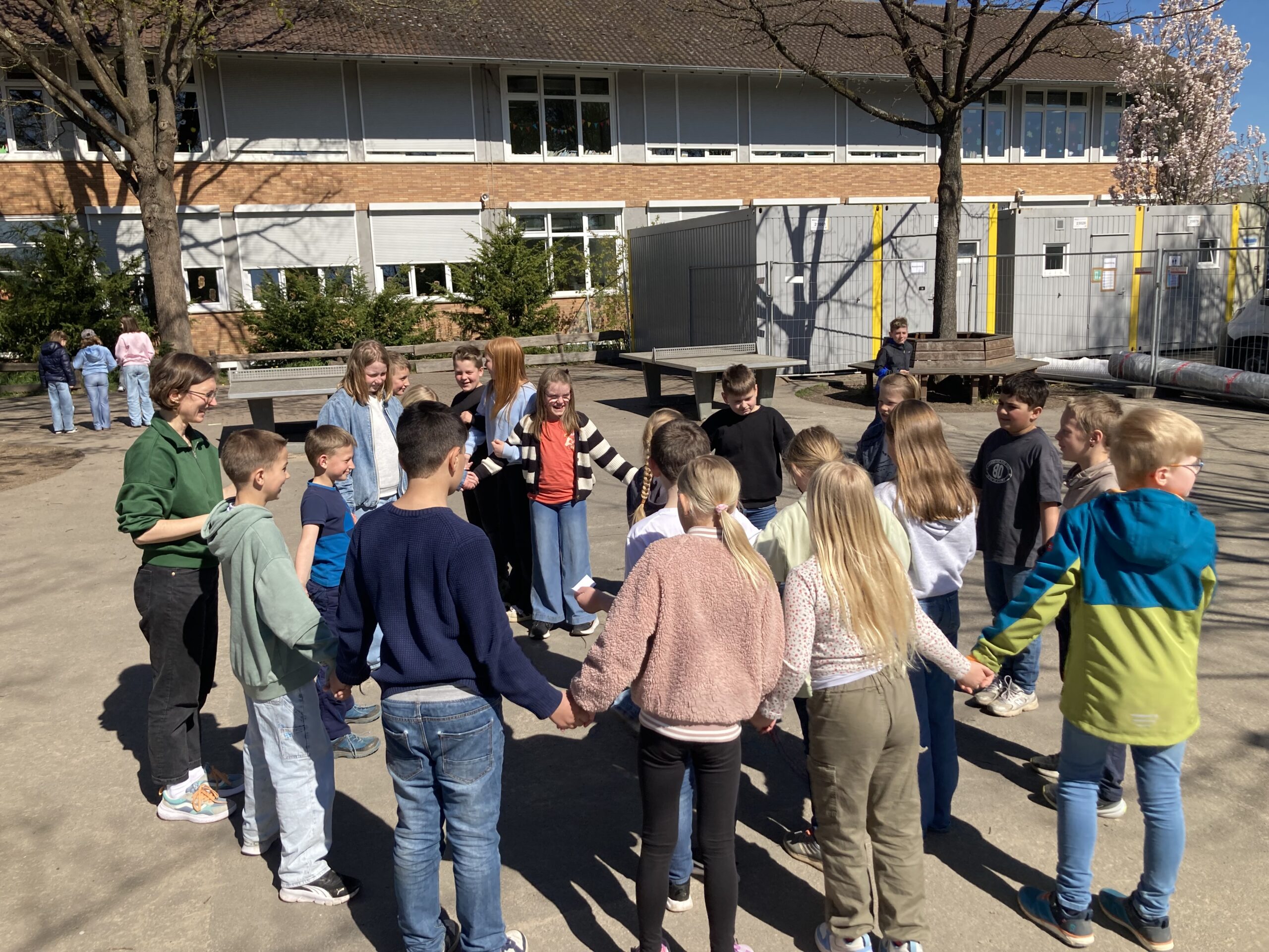 Am letzten Schultag vor den Osterferien war es wieder so weit: alle Kinder unserer Schule haben sich auf dem Schulhof im Steinkreis getroffen, um gemeinsam zu singen.