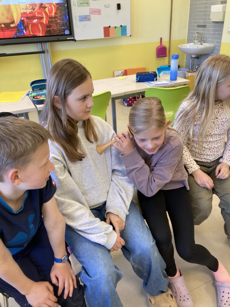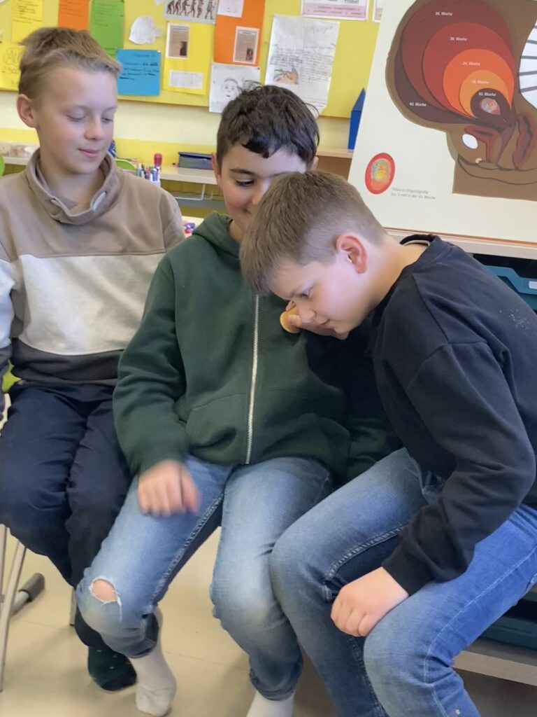 Auch wichtige Fragen wurden geklärt: Was ist eigentlich eine Plazenta? Welche Aufgabe hat die Nabelschnur? Und wofür ist das Fruchtwasser da? Mithilfe eines kleinen Experiments konnten die Kinder selbst herausfinden, wie gut das Fruchtwasser das Baby schützt. Außerdem beantwortete die Hebamme alle im Vorfeld gesammelten Fragen der Kinder geduldig und verständlich. Darüber hinaus konnten die Kinder mit einem Hörrohr die Herztöne ihrer Mitschülerinnen und Mitschüler hören.