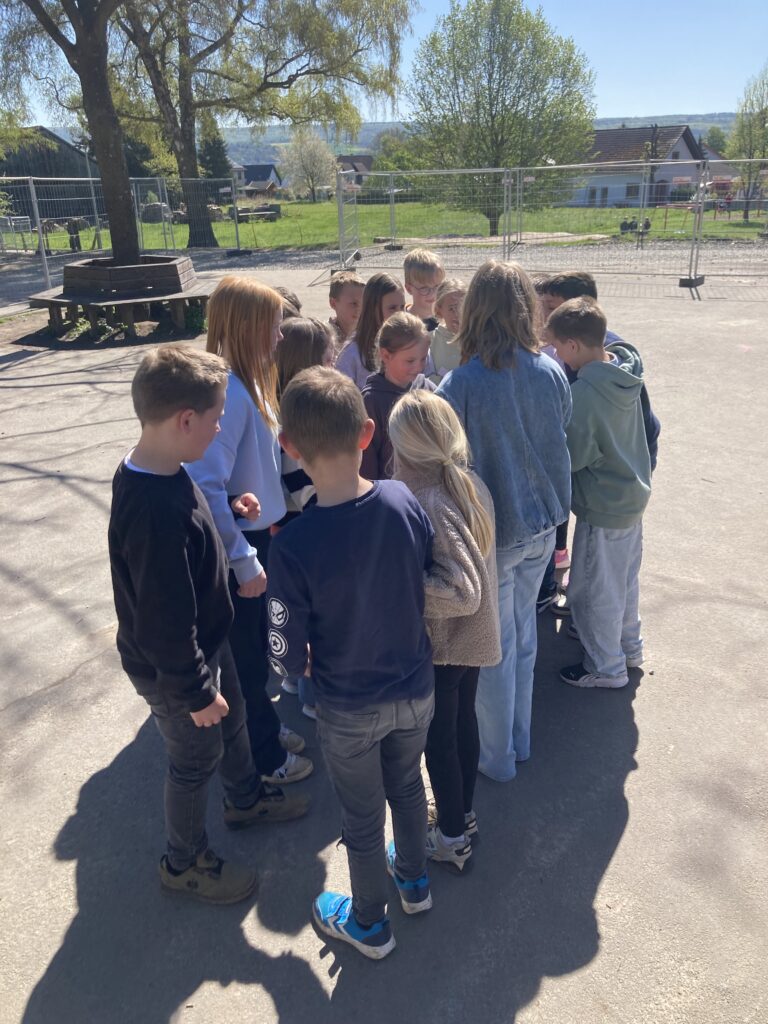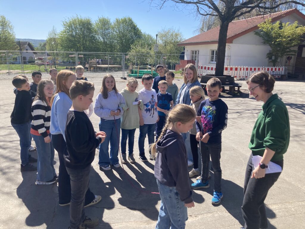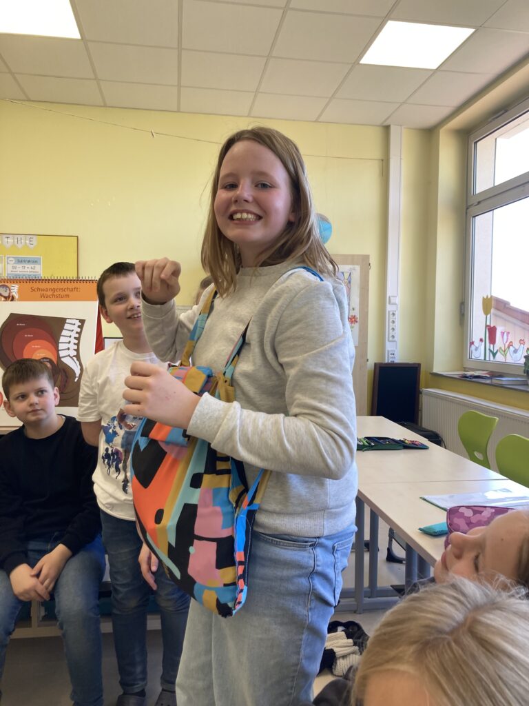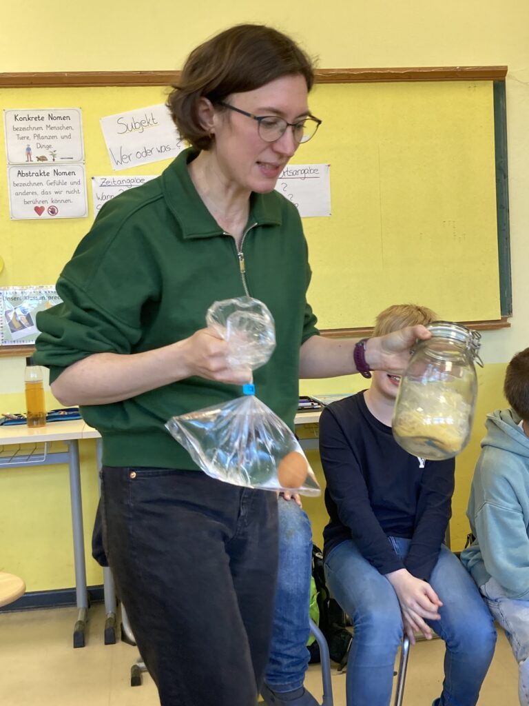 Besonders eindrucksvoll war auch ein etwa 6 kg schwerer Rucksack, den die Kinder vor dem Bauch tragen durften. So bekamen sie eine Vorstellung davon, wie schwer ein Baby zusammen mit Plazenta, Fruchtwasser und Nabelschnur im Bauch sein kann. Ein besonderes Highlight war das Nachspielen der Geburt auf dem Schulhof. In einem Rollenspiel übernahmen die Kinder verschiedene Rollen: Ein Kind stellte das Baby dar, andere die Plazenta und die Cervix. Durch „Wehen“ wurde schließlich das Baby geboren. Nach dem „Durchtrennen“ der Nabelschnur wurde auch die Plazenta mit der Nabelschnur „geboren“, sodass die Kinder den gesamten Ablauf anschaulich nachvollziehen konnten. Wir bedanken uns ganz herzlich bei der Hebamme für ihr großes Engagement, ihre Zeit und die kindgerechte Vermittlung dieses besonderen Themas.