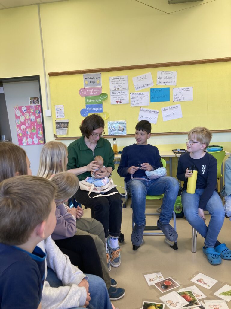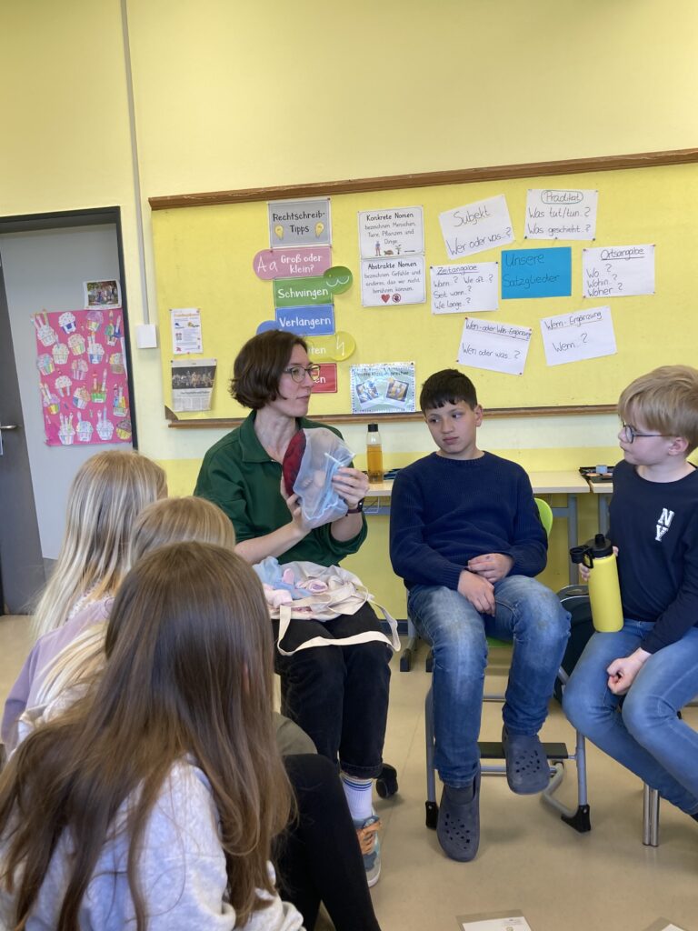Die Klasse 4b bekam im Sachunterricht Besuch von einer Hebamme, die den Kindern auf anschauliche und einfühlsame Weise das Thema Schwangerschaft und Geburt näherbrachte.