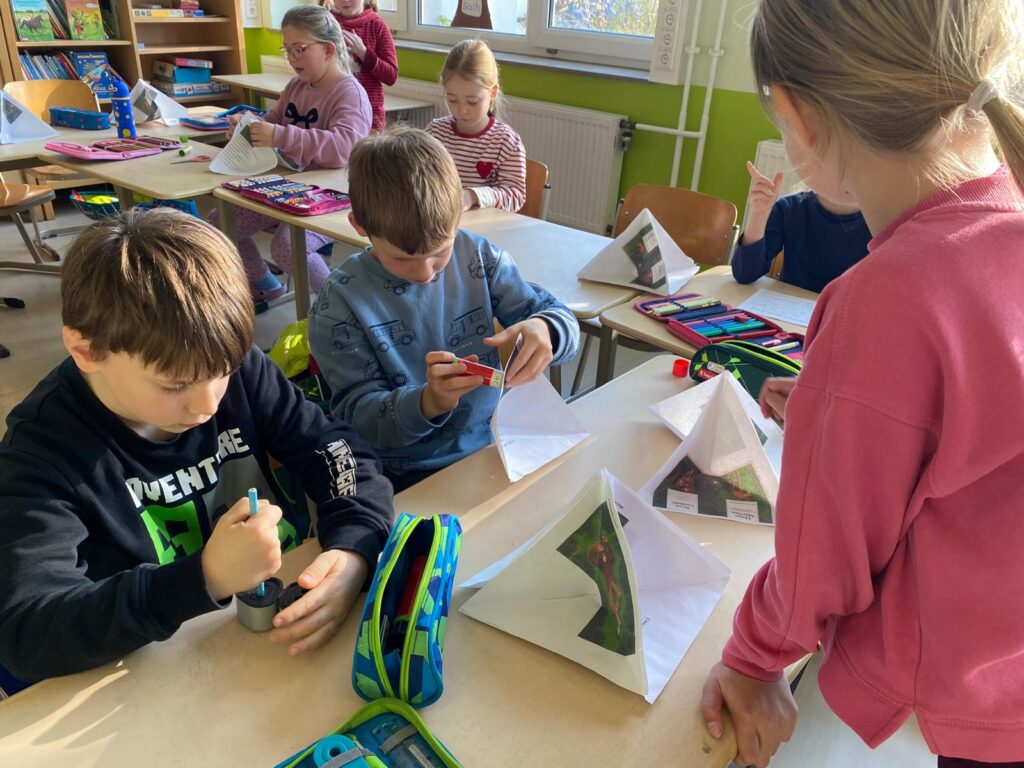 Im Anschluss erarbeiten wir ein passendes Lese-Mal-Heftchen und gestalten als Andenken an diesen besonderen Tag ein Quadrama.