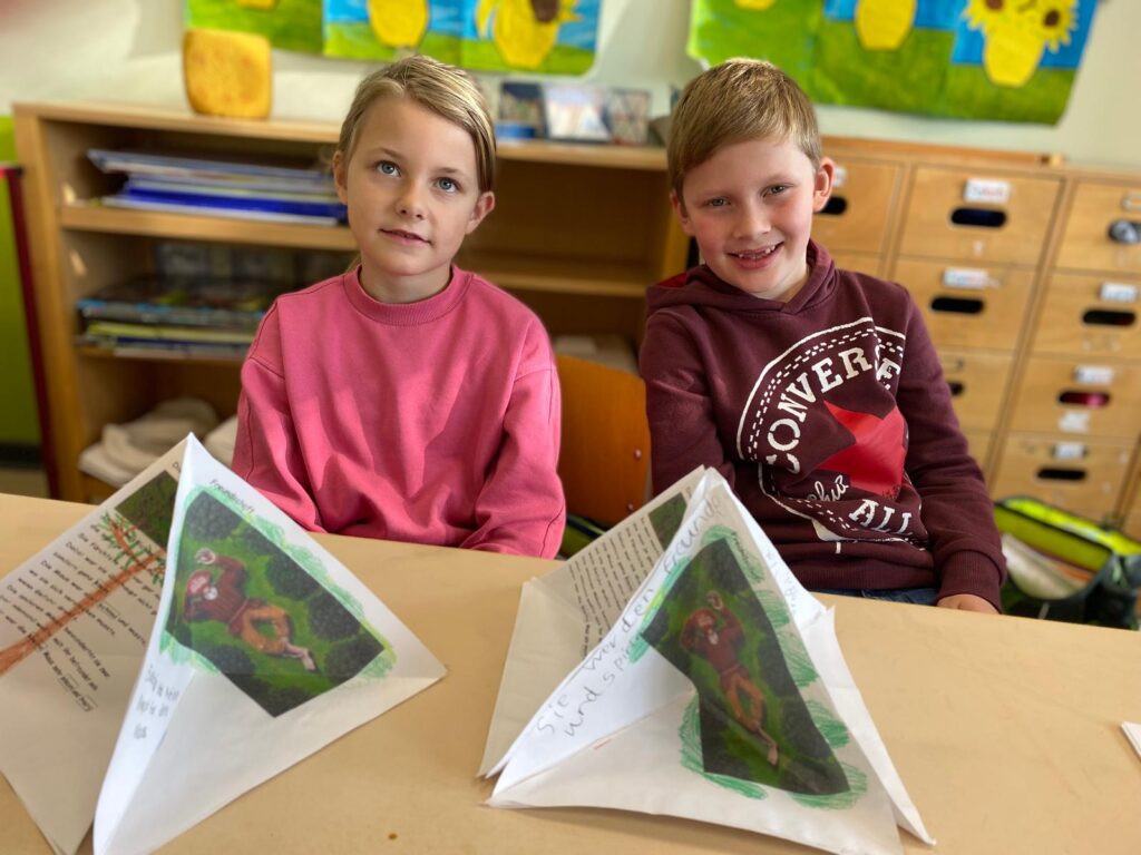 Am Freitag war Vorlesetag und die Klasse 2b erinnerte sich ans letzte Jahr. Damals in Klasse 1 war Hörbe mit dem großen Hut angesagt.